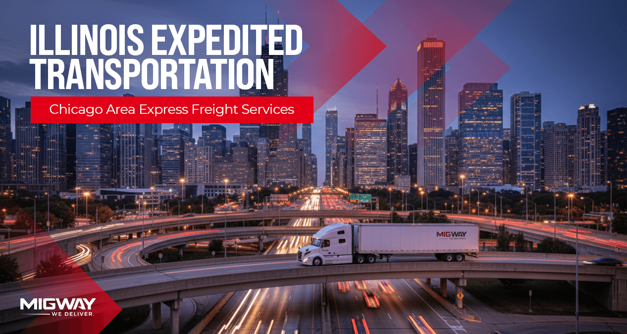 MigWay provides expedited freight services across Illinois, including Chicago, Joliet, Aurora, Naperville, Rockford, Peoria, and surrounding logistics hubs.